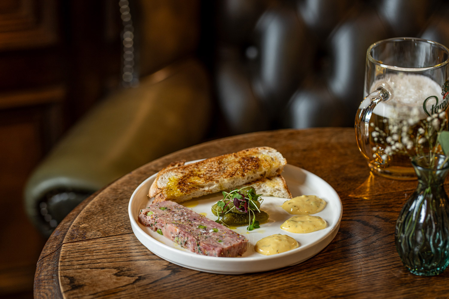Ham hock & pea terrine, cornichons, toasted sourdough | 9.5 426 kcals